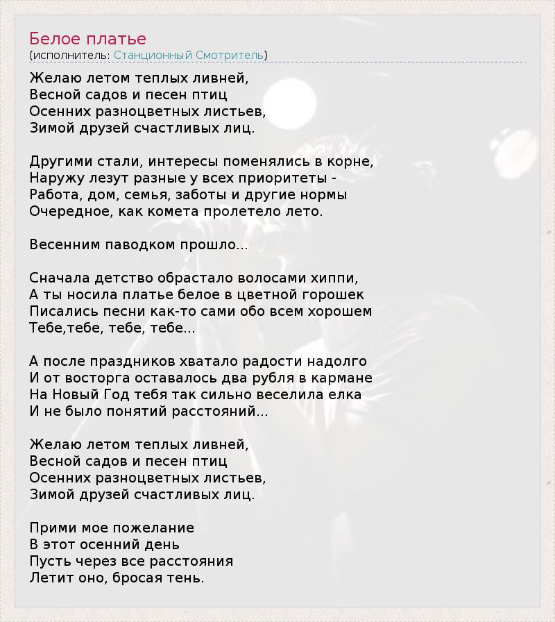 А как ты думаешь, о чем песня "Белое платье" ?