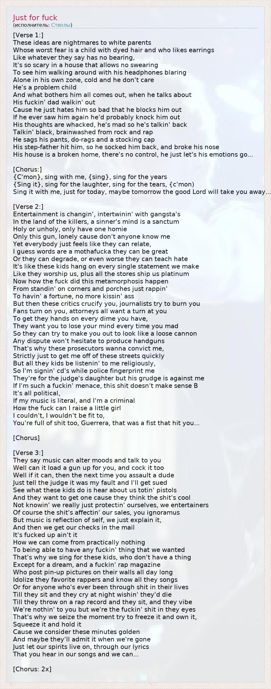 А как ты думаешь, о чем песня "Just for fuck" ?