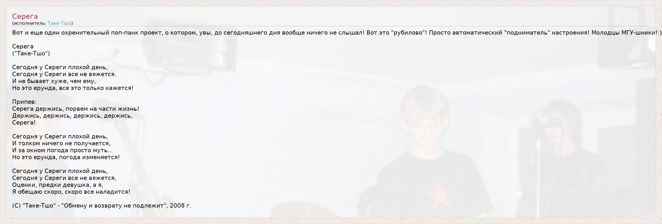 Вот и еще один охренительный поп-панк проект, о котором, увы, до сегодняшнего дня вообще ничего не слышал! Вот это "рубилово"! Просто автоматический "подниматель" настроения! Молодцы МГУ-шники!:)