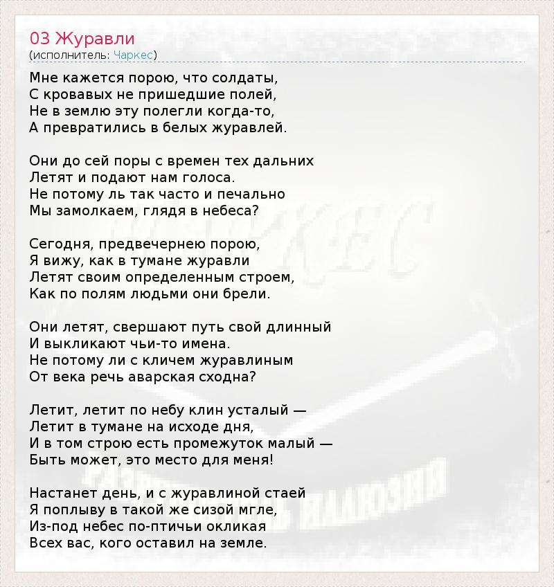 А как ты думаешь, о чем песня "03 Журавли" ?