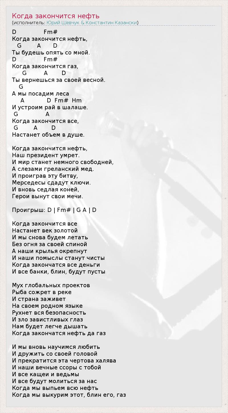 А как ты думаешь, о чем песня "Когда закончится нефть" ?