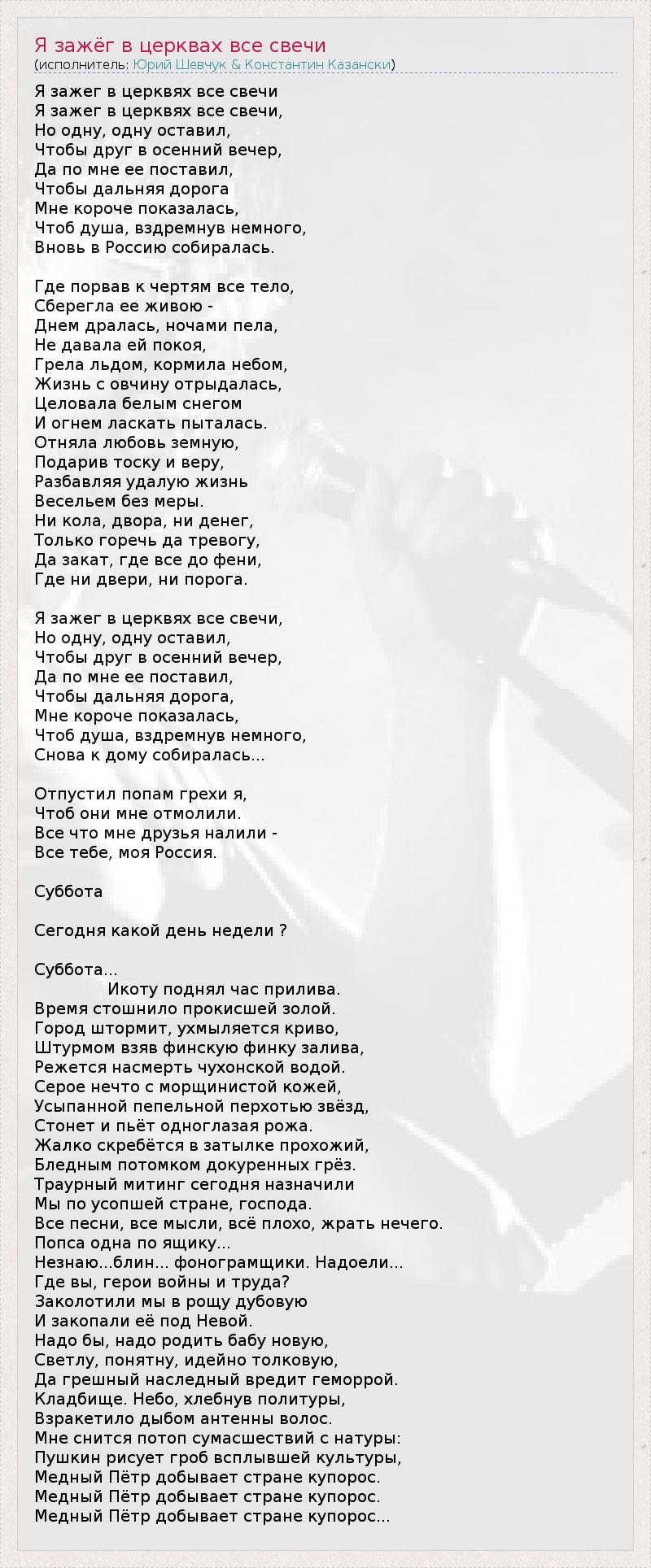 А как ты думаешь, о чем песня "Я зажёг в церквах все свечи" ?