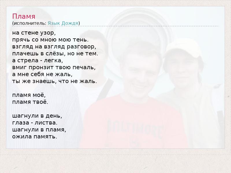 А как ты думаешь, о чем песня "Пламя" ?
