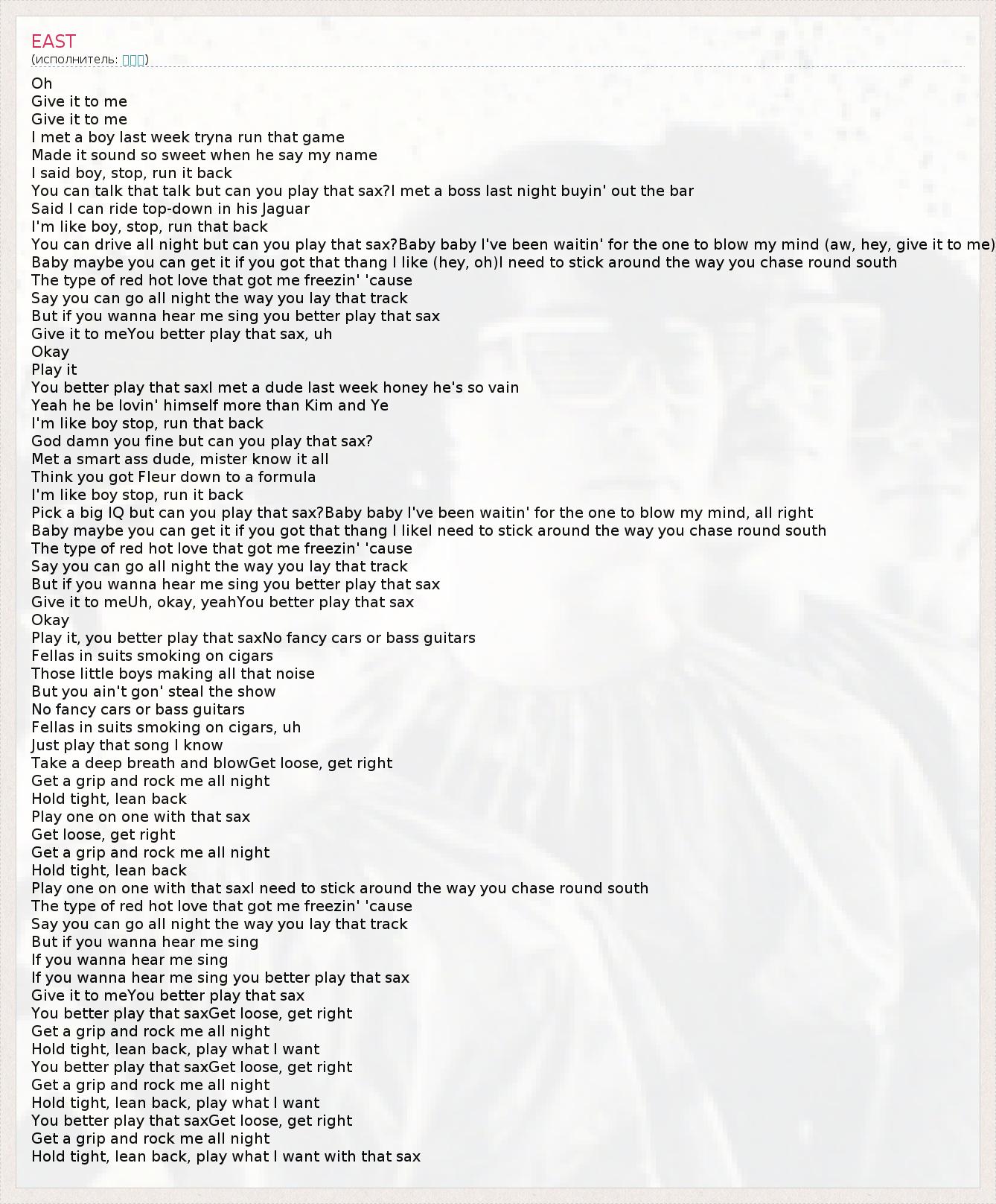 You can drive all night but can you play that sax?Baby baby I've been waitin' for the one to blow my mind (aw, hey, give it to me)