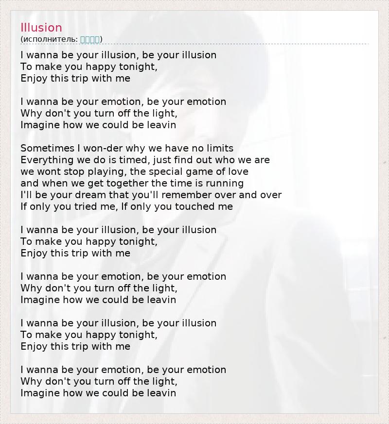 Введите перевод песниЯ хочу быть твоей иллюзией, быть вашей иллюзии