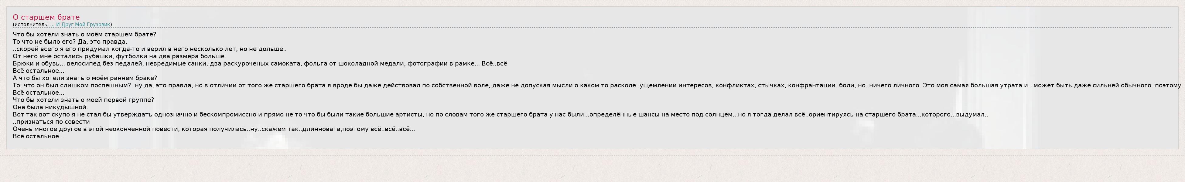 А как ты думаешь, о чем песня "О старшем брате" ?