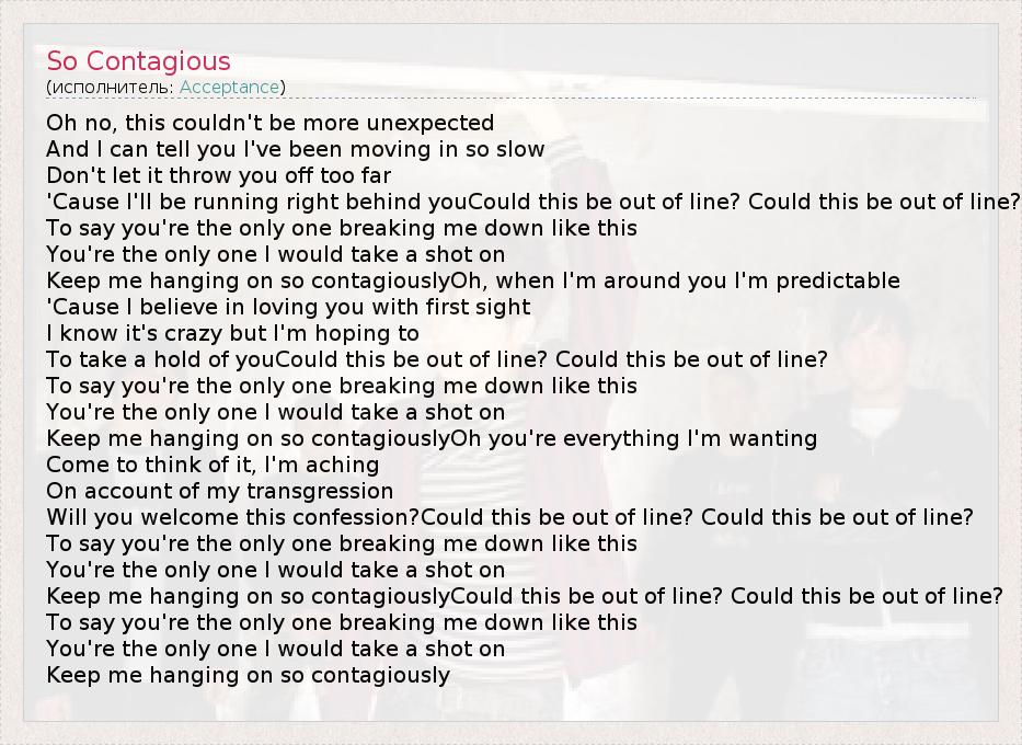 Keep me hanging on so contagiouslyCould this be out of line? Could this be out of line?