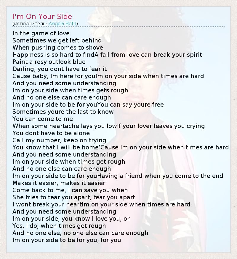 А как ты думаешь, о чем песня "I'm On Your Side" ?