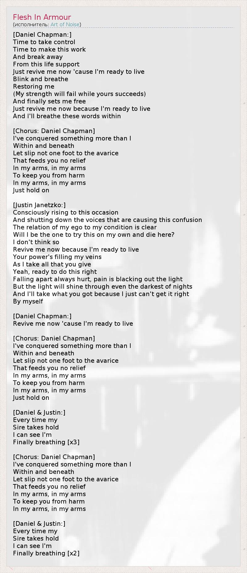 А как ты думаешь, о чем песня "Flesh In Armour" ?
