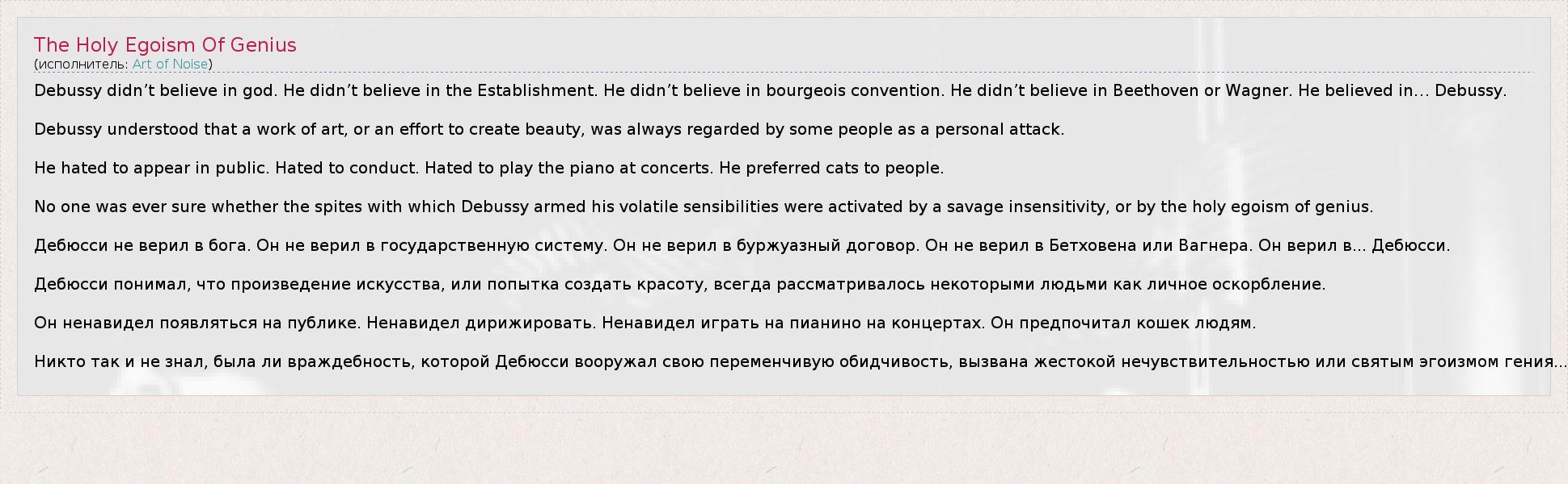 А как ты думаешь, о чем песня "The Holy Egoism Of Genius" ?
