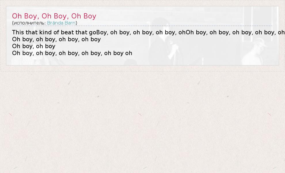 This that kind of beat that goBoy, oh boy, oh boy, oh boy, ohOh boy, oh boy, oh boy, oh boy, oh Oh boy, oh boy, oh boy, oh boy Oh boy, oh boy Oh boy, oh boy, oh boy, oh boy, oh boy oh