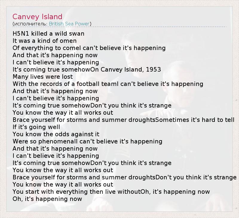А как ты думаешь, о чем песня "Canvey Island" ?