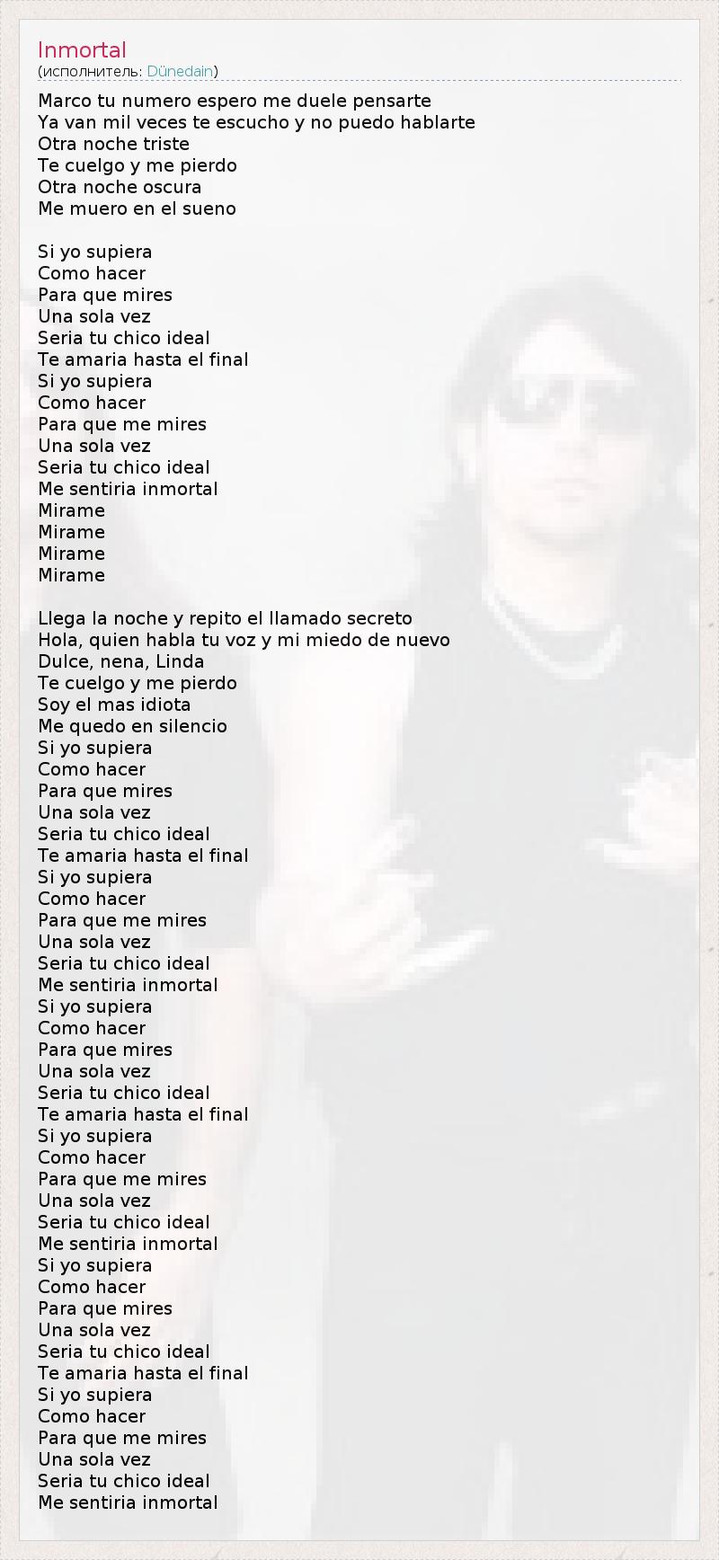 Marco tu numero espero me duele pensarte Ya van mil veces te escucho y no puedo hablarte Otra noche triste Te cuelgo y me pierdo Otra noche oscura Me muero en el sueno Si yo supiera Como hacer Para que mires Una sola vez Seria tu chico ideal Te amaria hasta el final Si yo supiera Como hacer Para que me mires Una sola vez Seria tu chico ideal Me sentiria inmortal Mirame Mirame Mirame Mirame Llega la noche y repito el llamado secreto Hola, quien habla tu voz y mi miedo de nuevo Dulce, nena, Linda Te cuelgo y me pierdo Soy el mas idiota Me quedo en silencio Si yo supiera Como hacer Para que mires Una sola vez Seria tu chico ideal Te amaria hasta el final Si yo supiera Como hacer Para que me mires Una sola vez Seria tu chico ideal Me sentiria inmortal Si yo supiera Como hacer Para que mires Una sola vez Seria tu chico ideal Te amaria hasta el final Si yo supiera Como hacer Para que me mires Una sola vez Seria tu chico ideal Me sentiria inmortal Si yo supiera Como hacer Para que mires Una sola vez Seria tu chico ideal Te amaria hasta el final Si yo supiera Como hacer Para que me mires Una sola vez Seria tu chico ideal Me sentiria inmortal