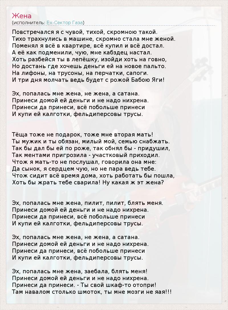 А как ты думаешь, о чем песня "Жена" ?