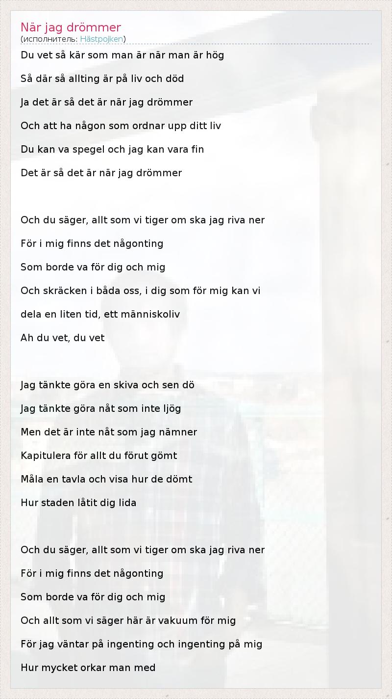 А как ты думаешь, о чем песня "När jag drömmer" ?