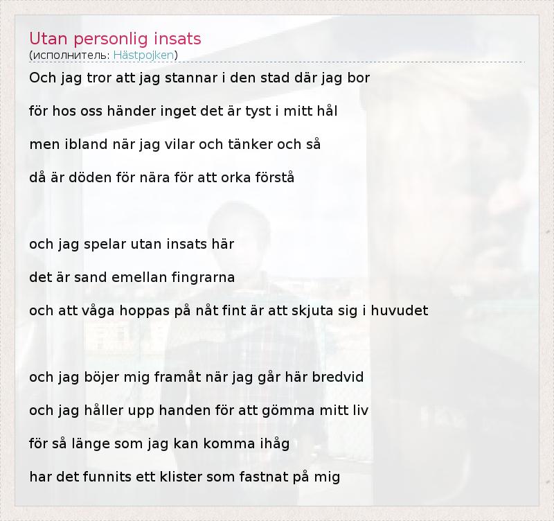 А как ты думаешь, о чем песня "Utan personlig insats" ?