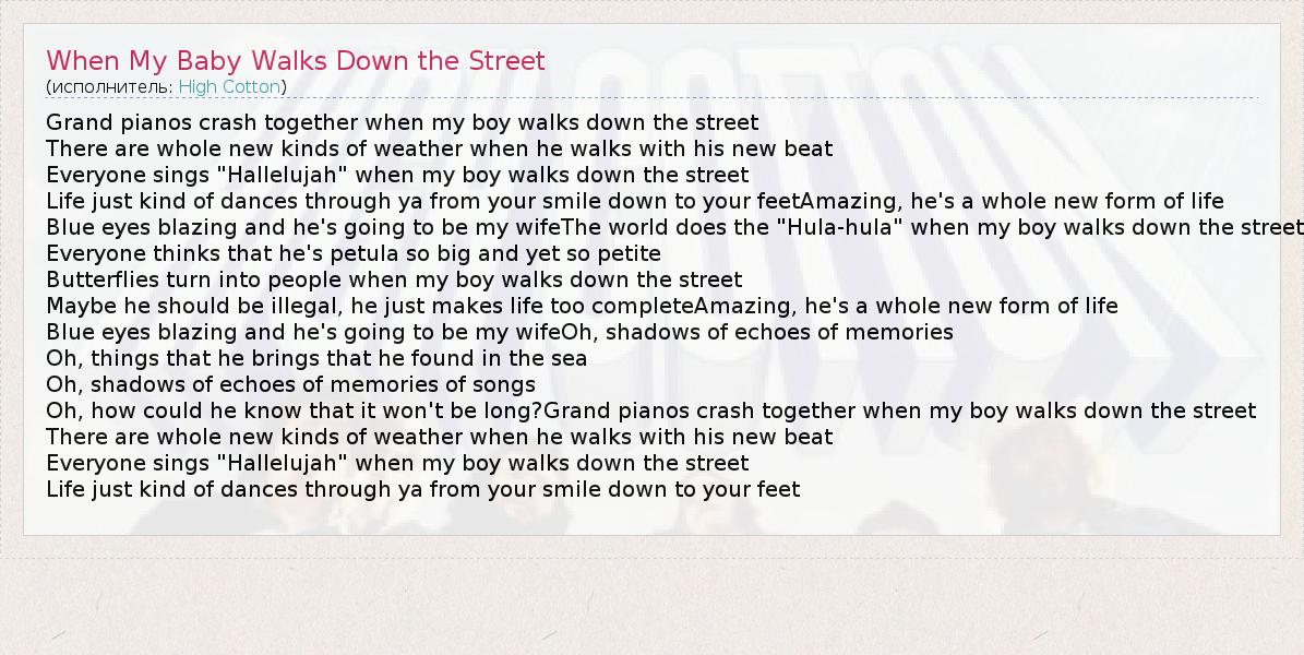 А как ты думаешь, о чем песня "When My Baby Walks Down the Street" ?