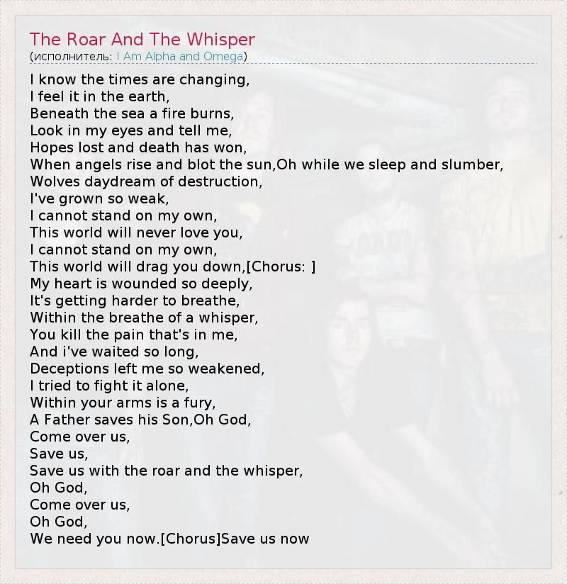 А как ты думаешь, о чем песня "The Roar And The Whisper" ?