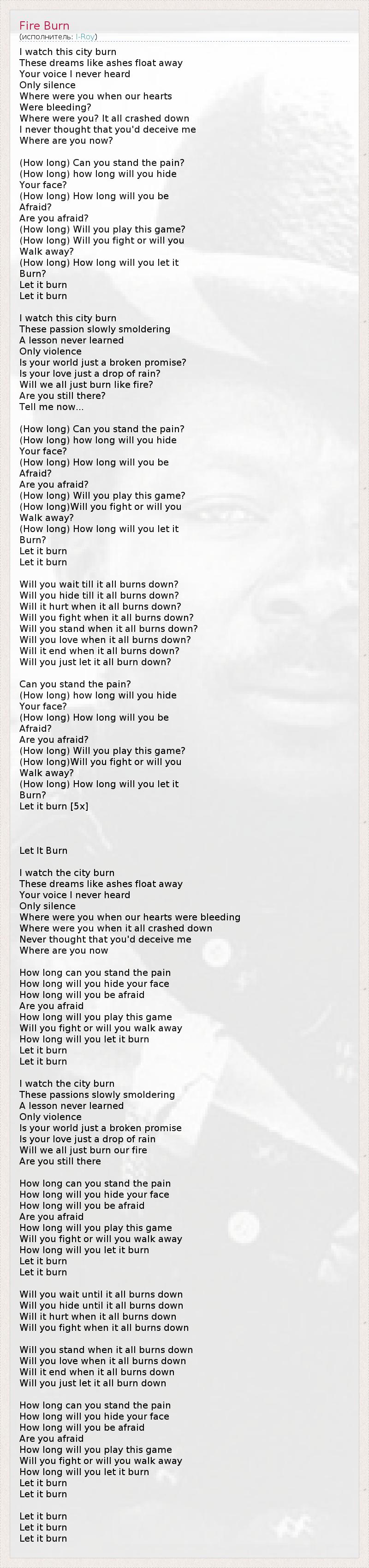 А как ты думаешь, о чем песня "Fire Burn" ?