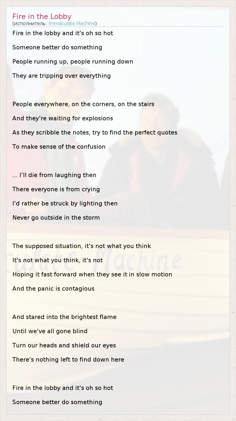 А как ты думаешь, о чем песня "Fire in the Lobby" ?