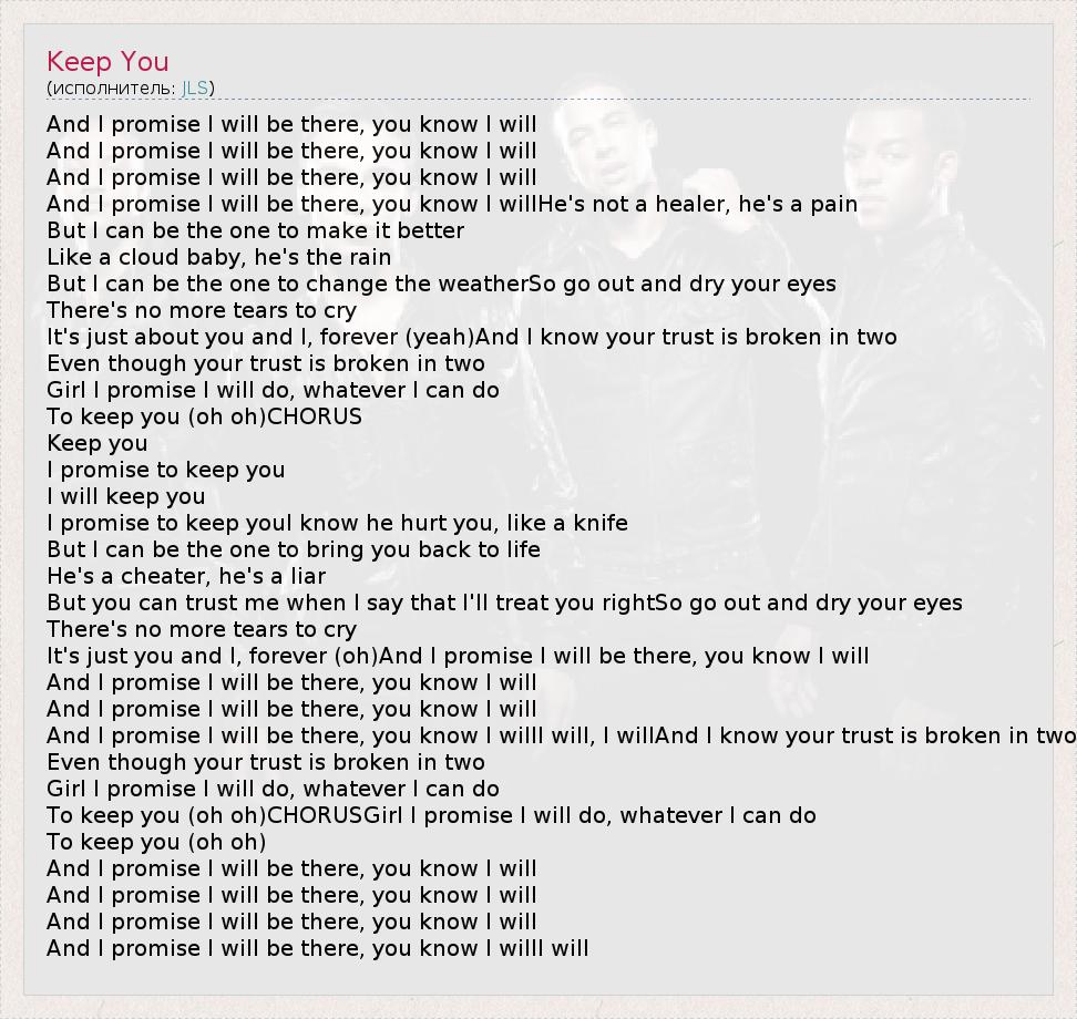 And I promise I will be there, you know I willI will, I willAnd I know your trust is broken in two