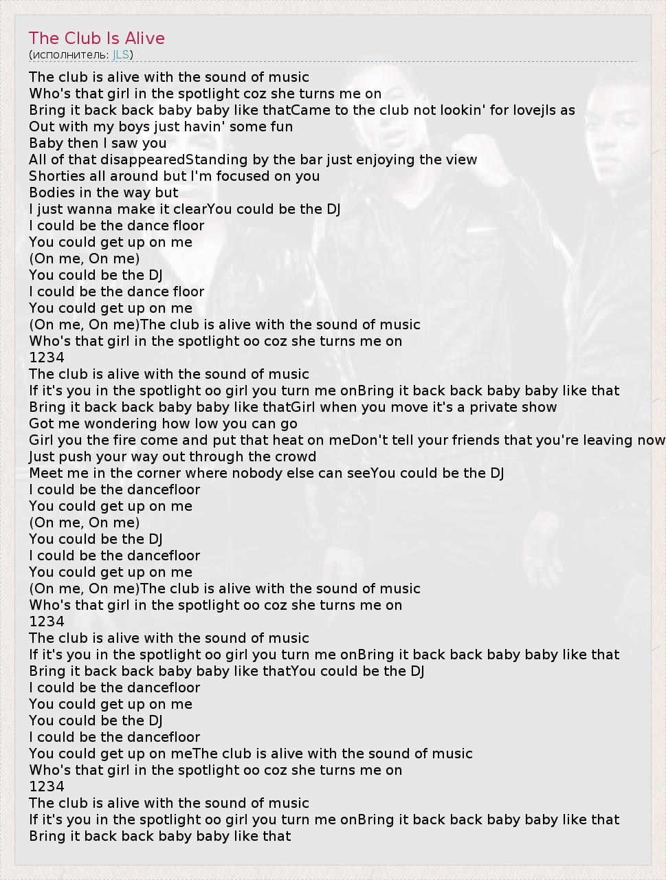 (On me, On me)The club is alive with the sound of music