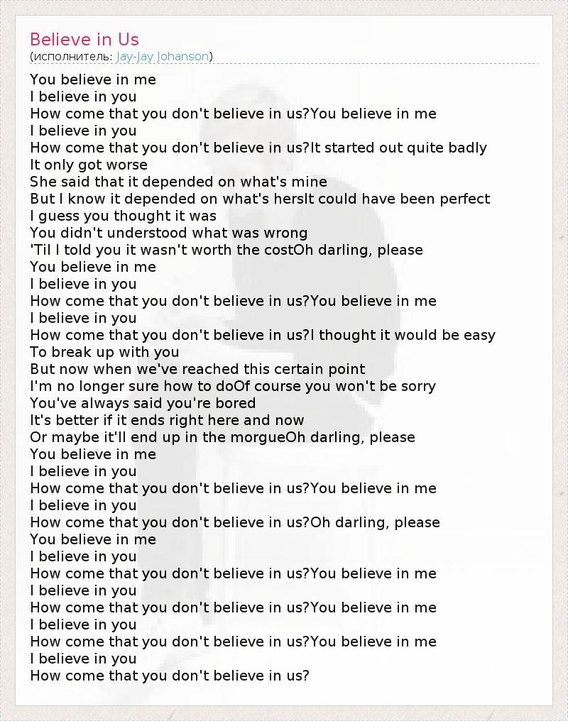 А как ты думаешь, о чем песня "Believe in Us" ?