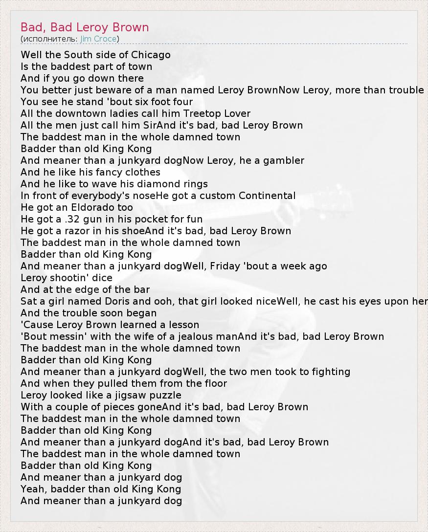 А как ты думаешь, о чем песня "Bad, Bad Leroy Brown" ?