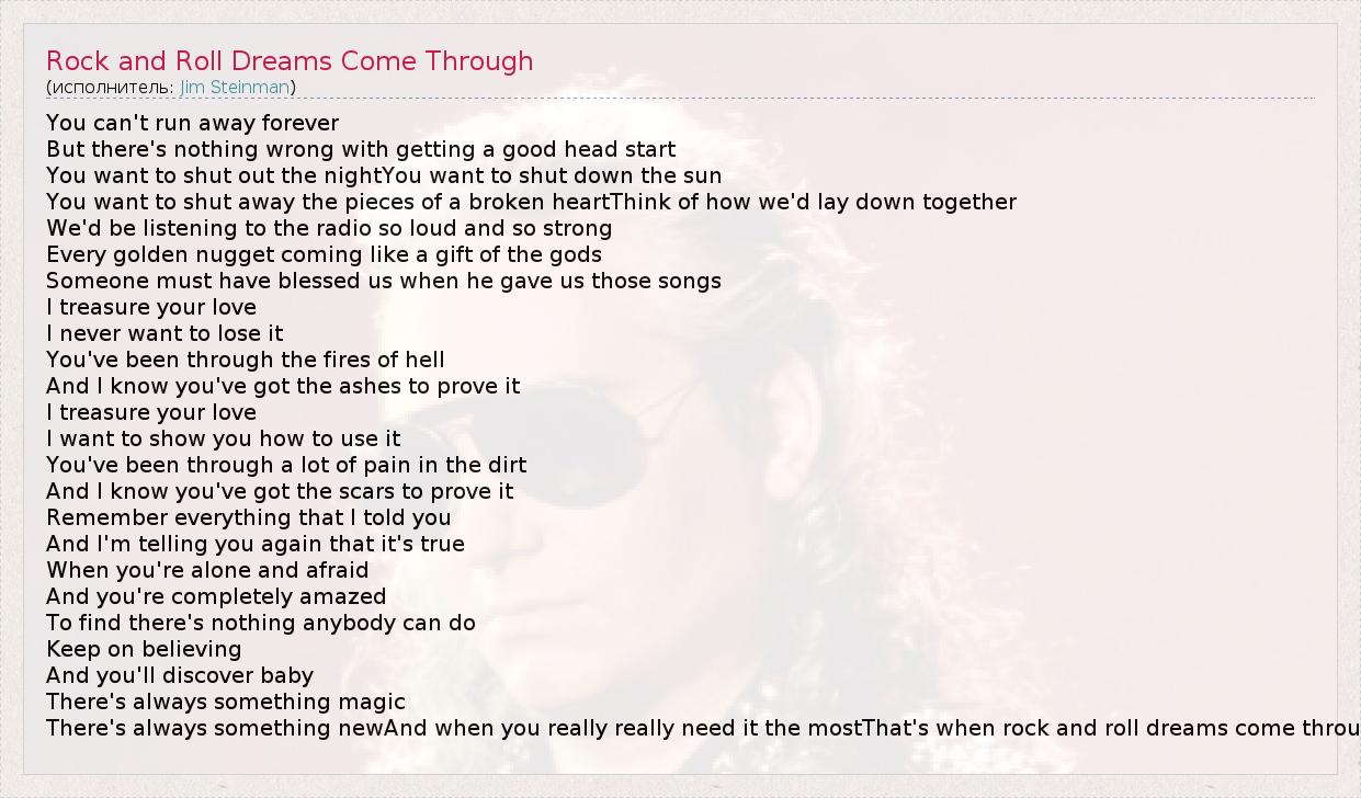ГлавнаяИсполнителиJim SteinmanRock and Roll Dreams Come Through