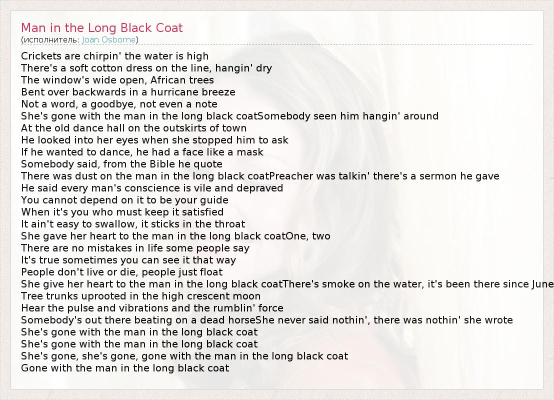 А как ты думаешь, о чем песня "Man in the Long Black Coat" ?