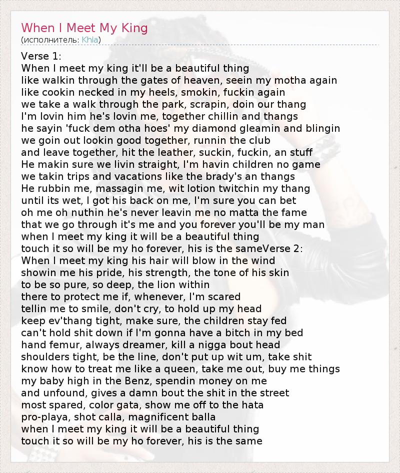 А как ты думаешь, о чем песня "When I Meet My King" ?