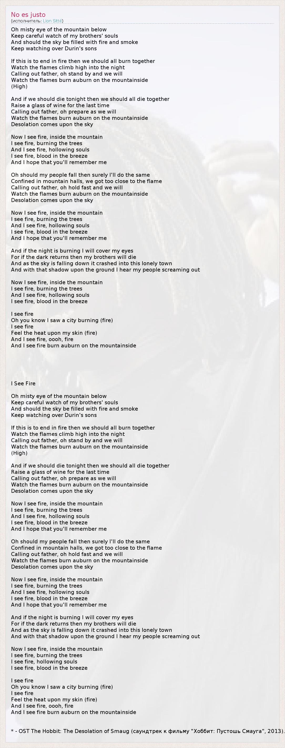 * - OST The Hobbit: The Desolation of Smaug (саундтрек к фильму "Хоббит: Пустошь Смауга", 2013).