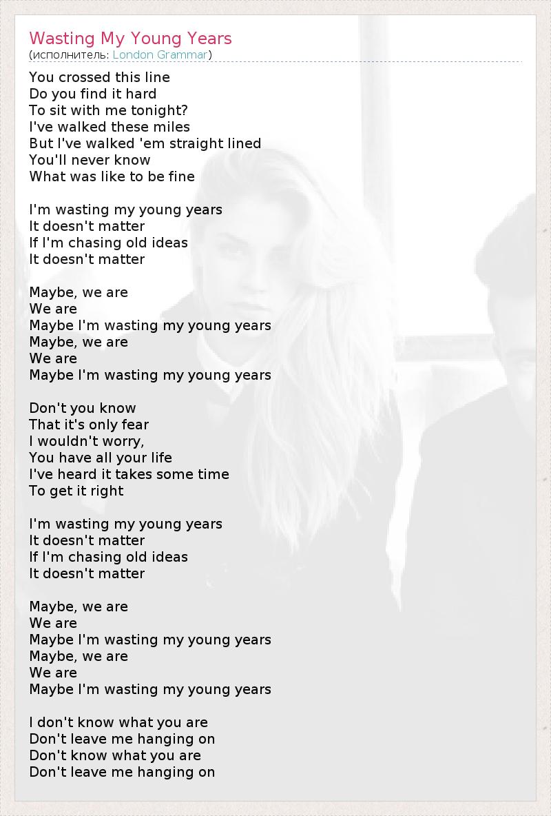 А как ты думаешь, о чем песня "Wasting My Young Years" ?