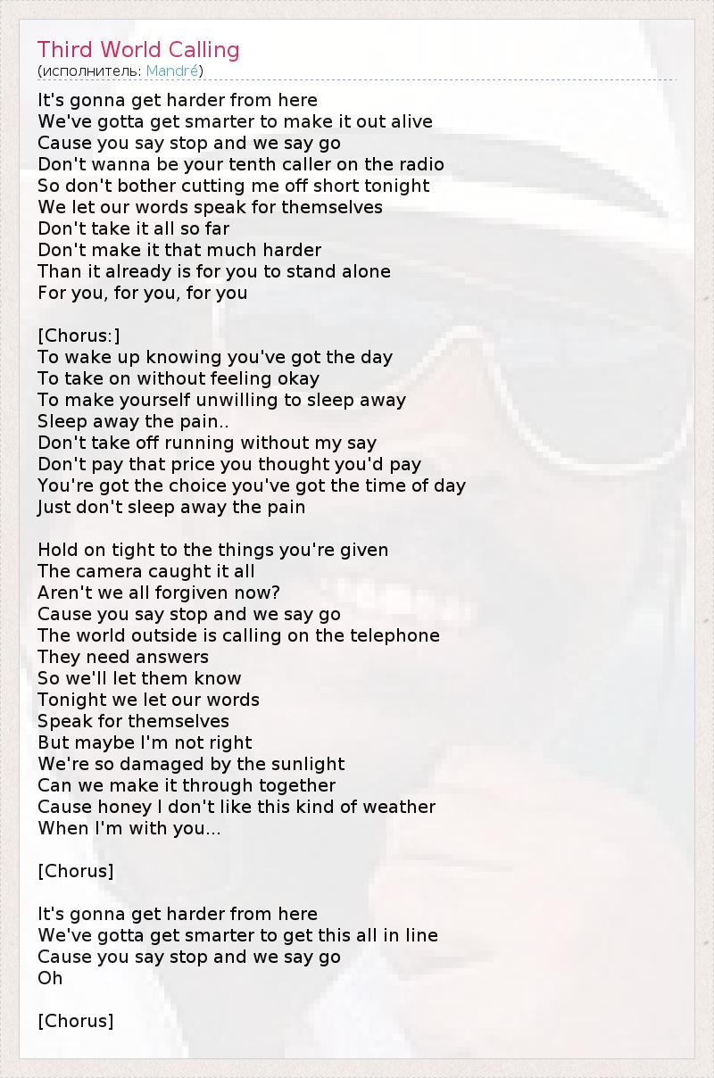 А как ты думаешь, о чем песня "Third World Calling" ?