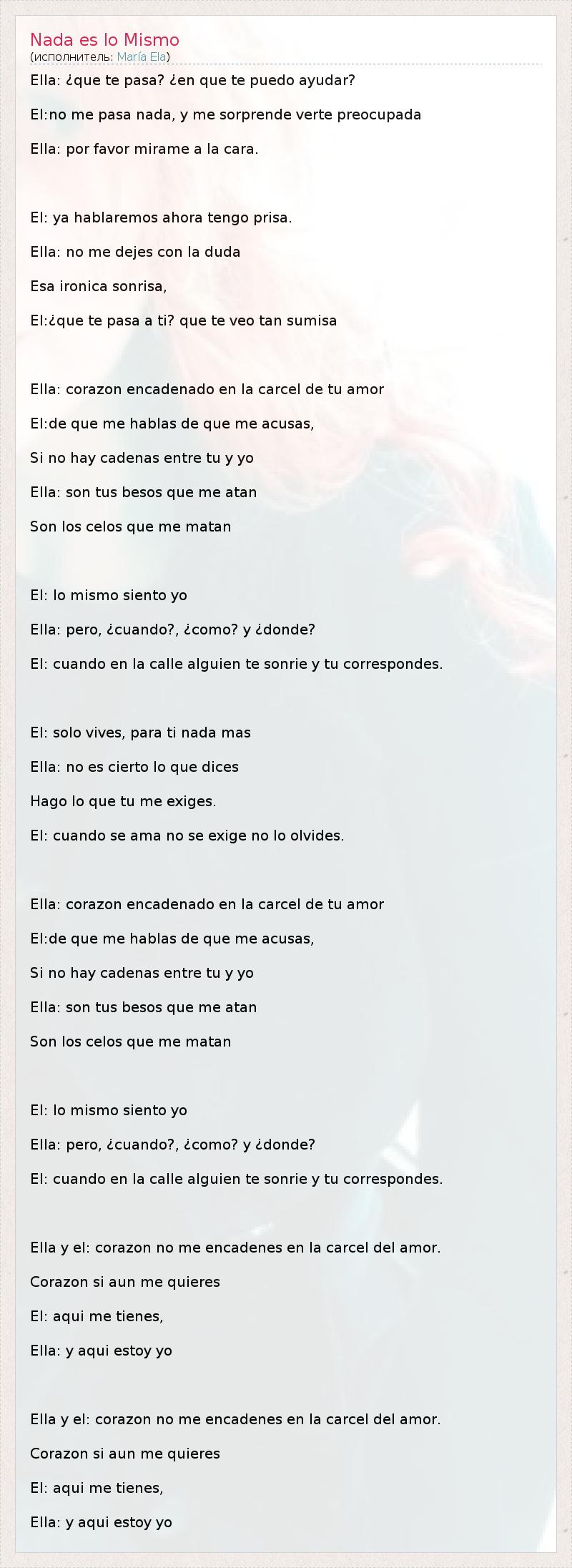 А как ты думаешь, о чем песня "Nada es lo Mismo" ?