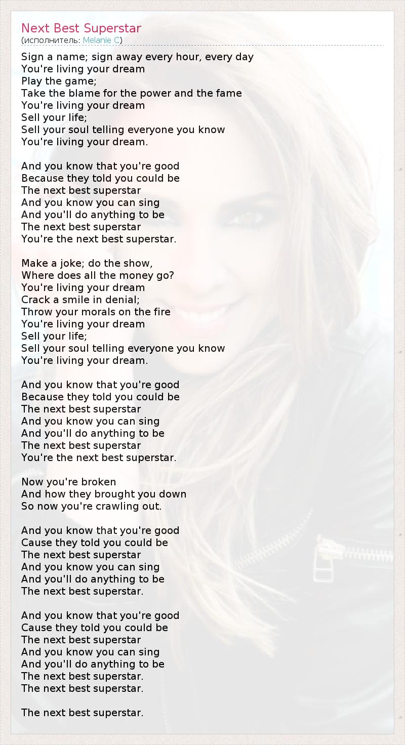 А как ты думаешь, о чем песня "Next Best Superstar" ?