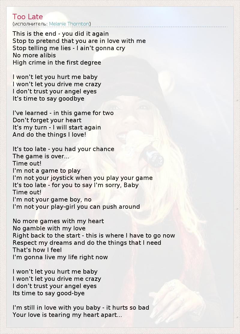 А как ты думаешь, о чем песня "Too Late" ?