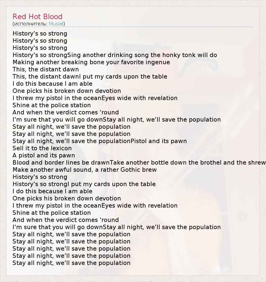 А как ты думаешь, о чем песня "Red Hot Blood" ?