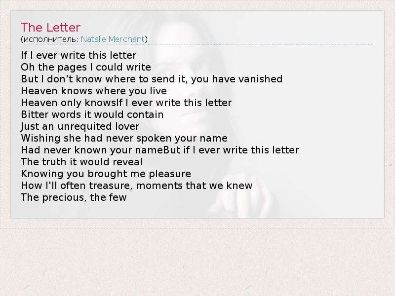 Это интересно:Американская певица и автор песен Натали Мерчант родилась 26 октября 1963 года в Джеймстауне (штат Нью-Йорк, США). Она с самого детства знакома с музыкой – ее дед играл на аккордеоне, мандолине и гитаре, а мать будущей певицы очень увлекалась творчеством The Beatles, Эла Грина и других исполнителей. Именно она в значительной мере повлияла на желание Натали заниматься музыкой. Долгое время Мерчант... продолжение