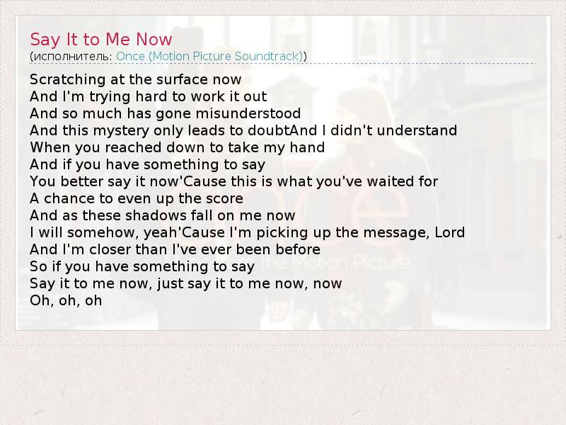 А как ты думаешь, о чем песня "Say It to Me Now" ?