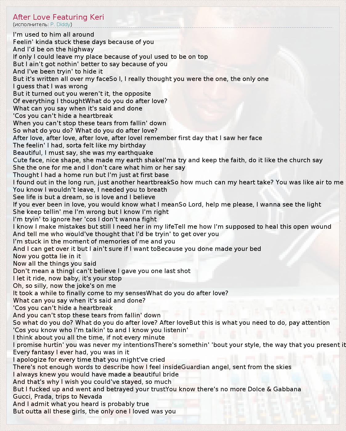 А как ты думаешь, о чем песня "After Love Featuring Keri" ?