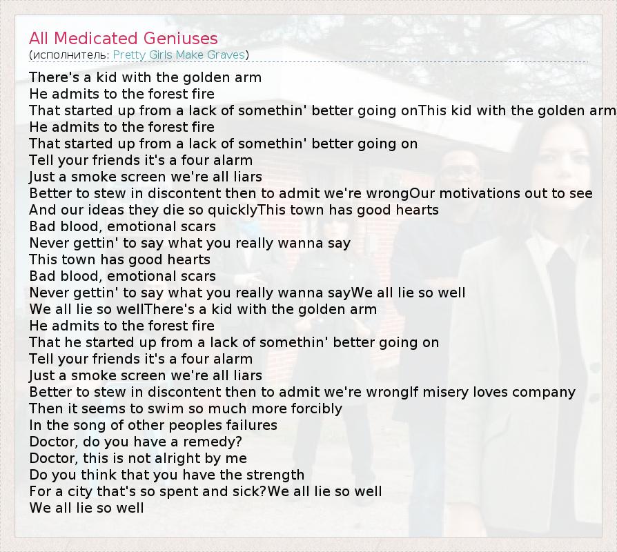 А как ты думаешь, о чем песня "All Medicated Geniuses" ?