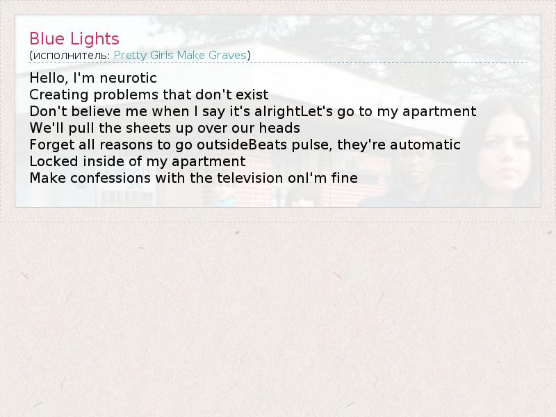 А как ты думаешь, о чем песня "Blue Lights" ?
