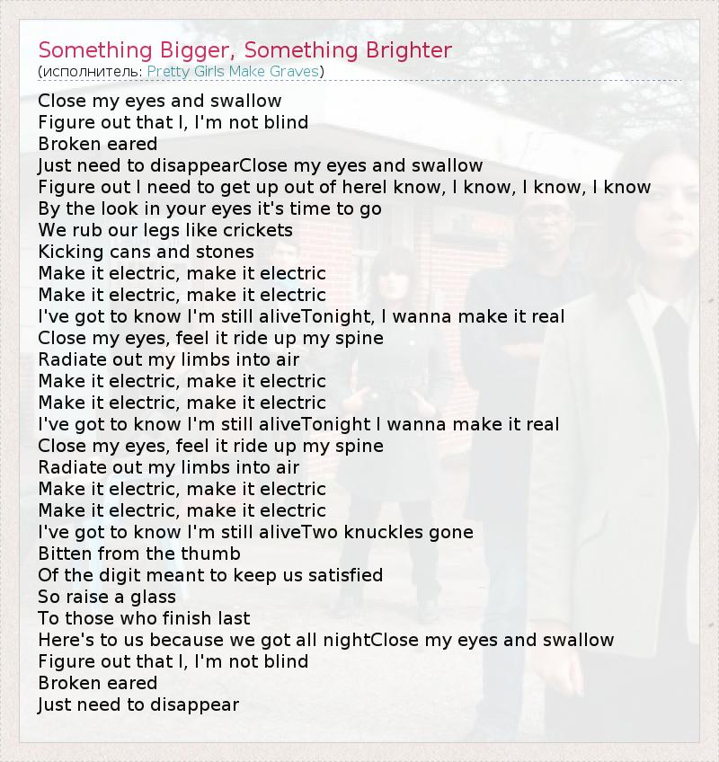 ГлавнаяИсполнителиPretty Girls Make GravesSomething Bigger, Something Brighter