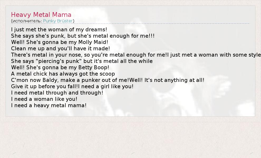 А как ты думаешь, о чем песня "Heavy Metal Mama" ?