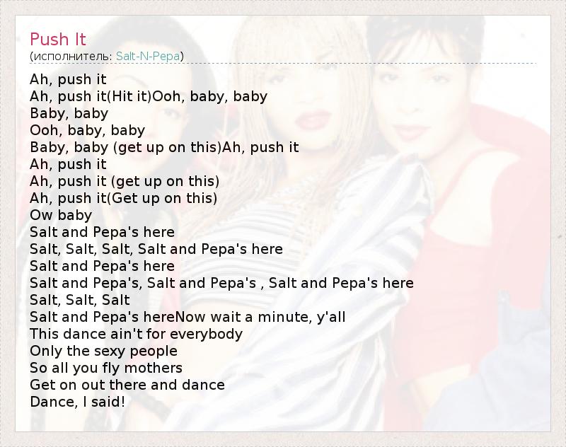 Это интересно:Напомню сразу, что SALT’N’PEPA — это женское трио из Америки.Cheryl ‘Salt’ James родом из нью–йоркского района Бруклин. Sandy‘Pepa’ Denton (р. 9.10.1969 г.) родилась на Ямайке, но росла также в Нью–Йорке (район Куинс). Обе семьи были многодетными.Дамочки познакомились в колледже, затем окончания которого могли начинать воспитателями в детском саду. Обе стали подрабатывать в супермаркете под названием... продолжение