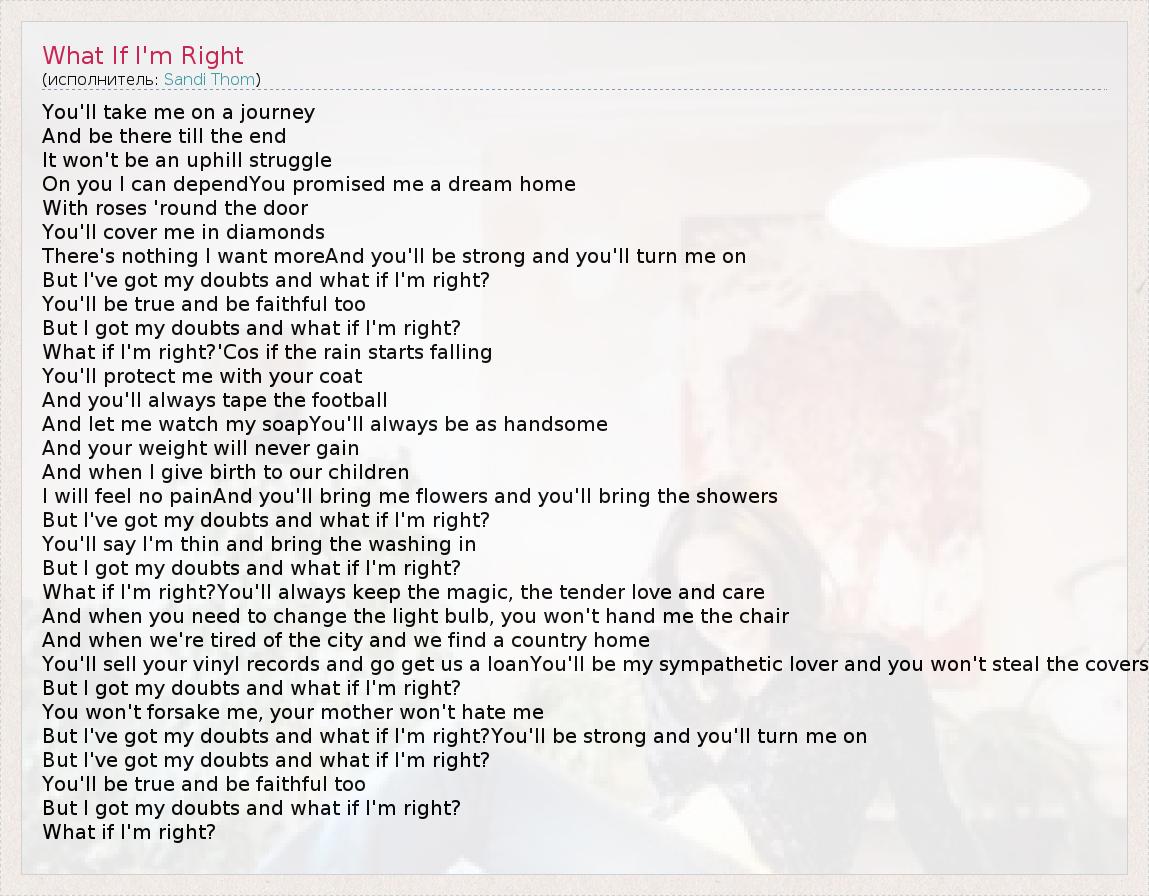 А как ты думаешь, о чем песня "What If I'm Right" ?
