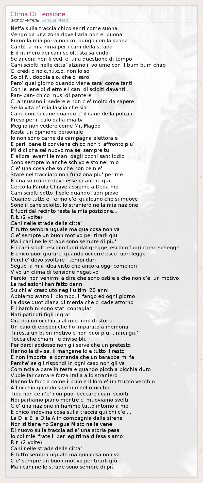 А как ты думаешь, о чем песня "Clima Di Tensione" ?