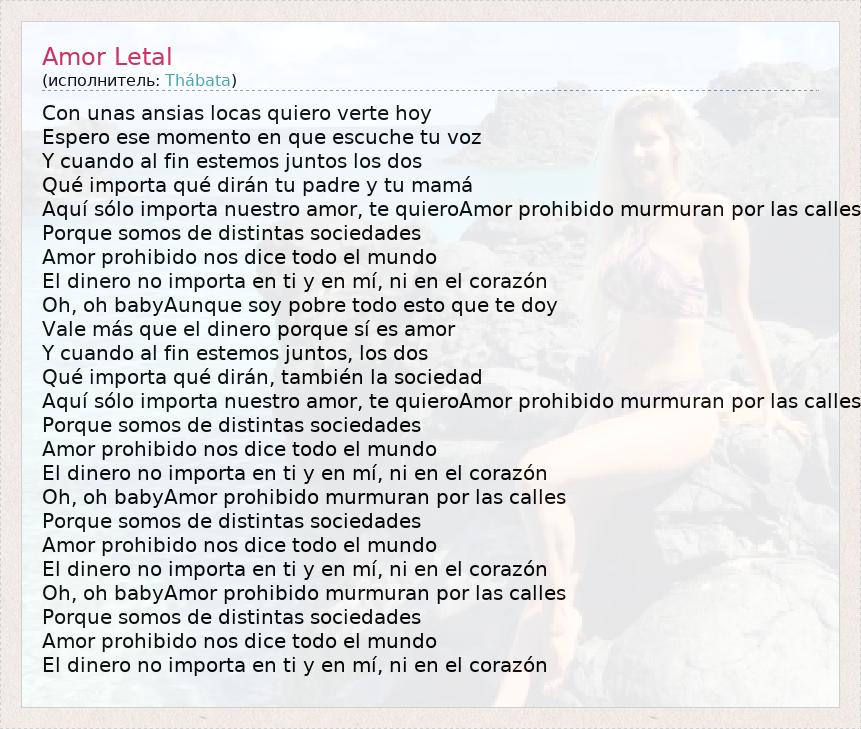 А как ты думаешь, о чем песня "Amor Letal" ?