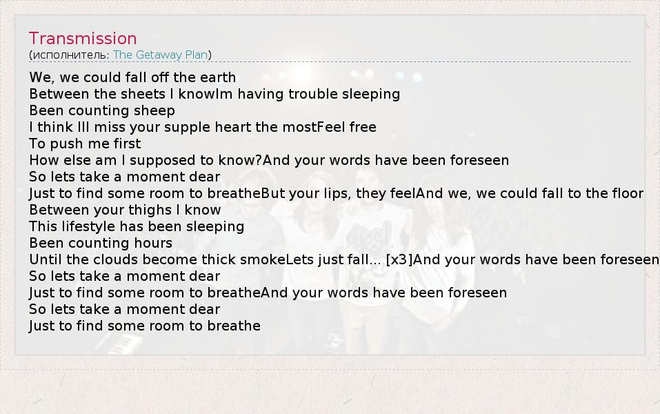 А как ты думаешь, о чем песня "Transmission" ?